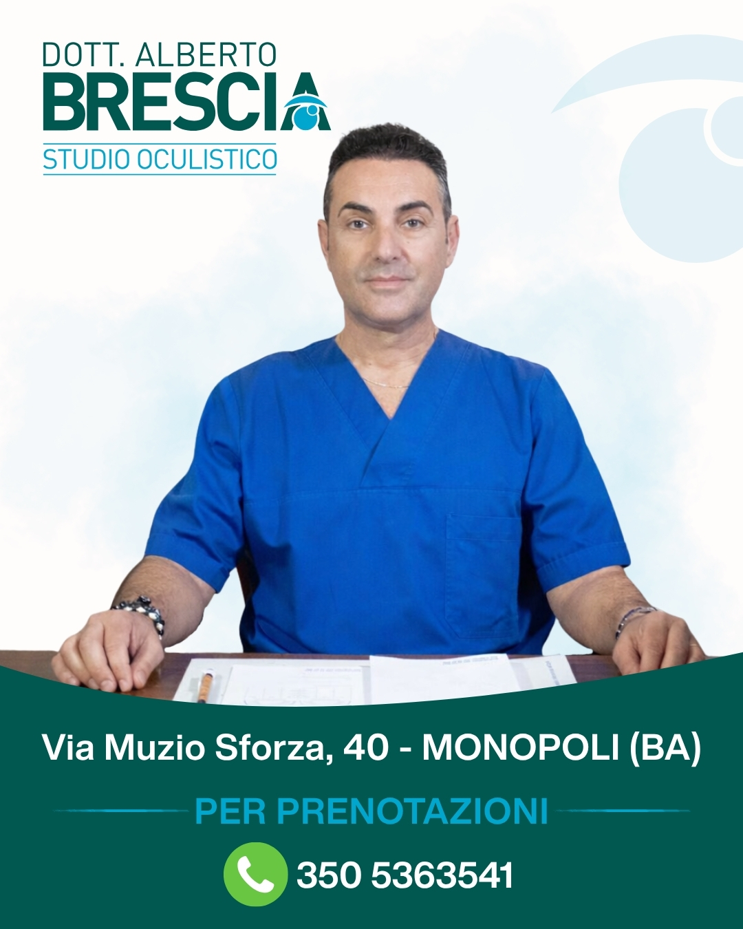 Pubblicato su Vincenza MiletiTrustindex verifica che la fonte originale della recensione sia Google. Professionalità ed empatia ,disponibilità e chiarezza nelle spiegazioni. Consiglio vivamente il Dott.BresciaPubblicato su AntonioTrustindex verifica che la fonte originale della recensione sia Google. Medico giovane ma preparato, con strumenti all'avanguardia, mette a proprio agio i pazienti. Dotato di ottima capacità di ascolto, disponibile e professionale, lo consiglio vivamente.Pubblicato su monia longoTrustindex verifica che la fonte originale della recensione sia Google. Molto bravo.....Pubblicato su Vincenzo LilloTrustindex verifica che la fonte originale della recensione sia Google. Professionalità, disponibilità e competenza. ConsigliatissimoPubblicato su Mimmo RizziTrustindex verifica che la fonte originale della recensione sia Google. Mentre ero in vacanza a monopoli ( da Trento) ho avuto dei problemi agli occhi mi hanno indirizzato questo centro oculistico il quale mi ha subito accettato per un controllo. Ho avuto la fortuna di trovare un dottore molto disponibile e soprattutto molto professionale . E poi dicono che al sud i servizi funzionano non al meglio. Grazie per la disponibilità.Pubblicato su Renzo LopTrustindex verifica che la fonte originale della recensione sia Google. Dottore molto competente e disponibile, studio pulito e con macchinari all'avanguardia. Consigliatissimo.